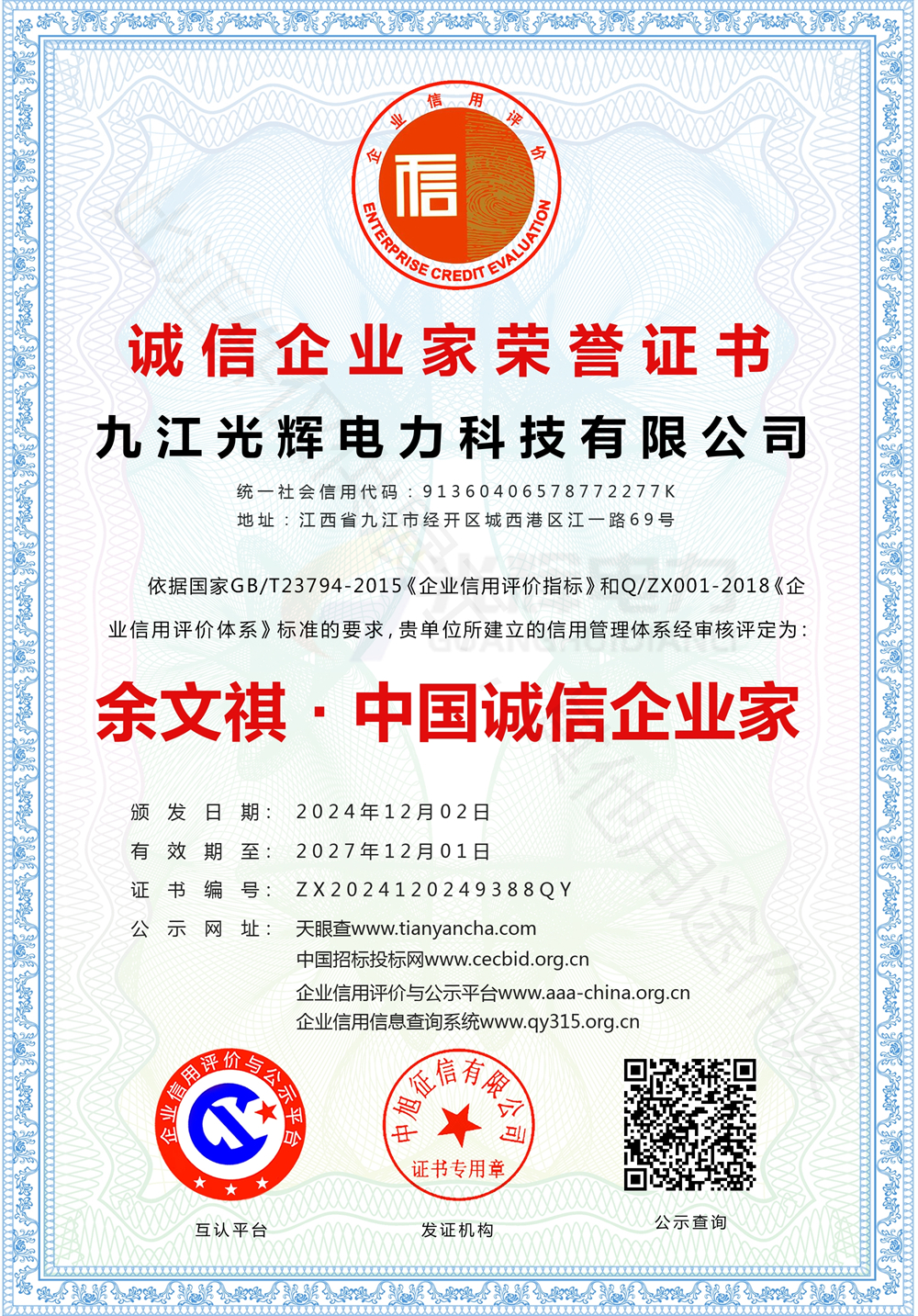 誠(chéng)信企業(yè)家榮譽(yù)證書(shū)